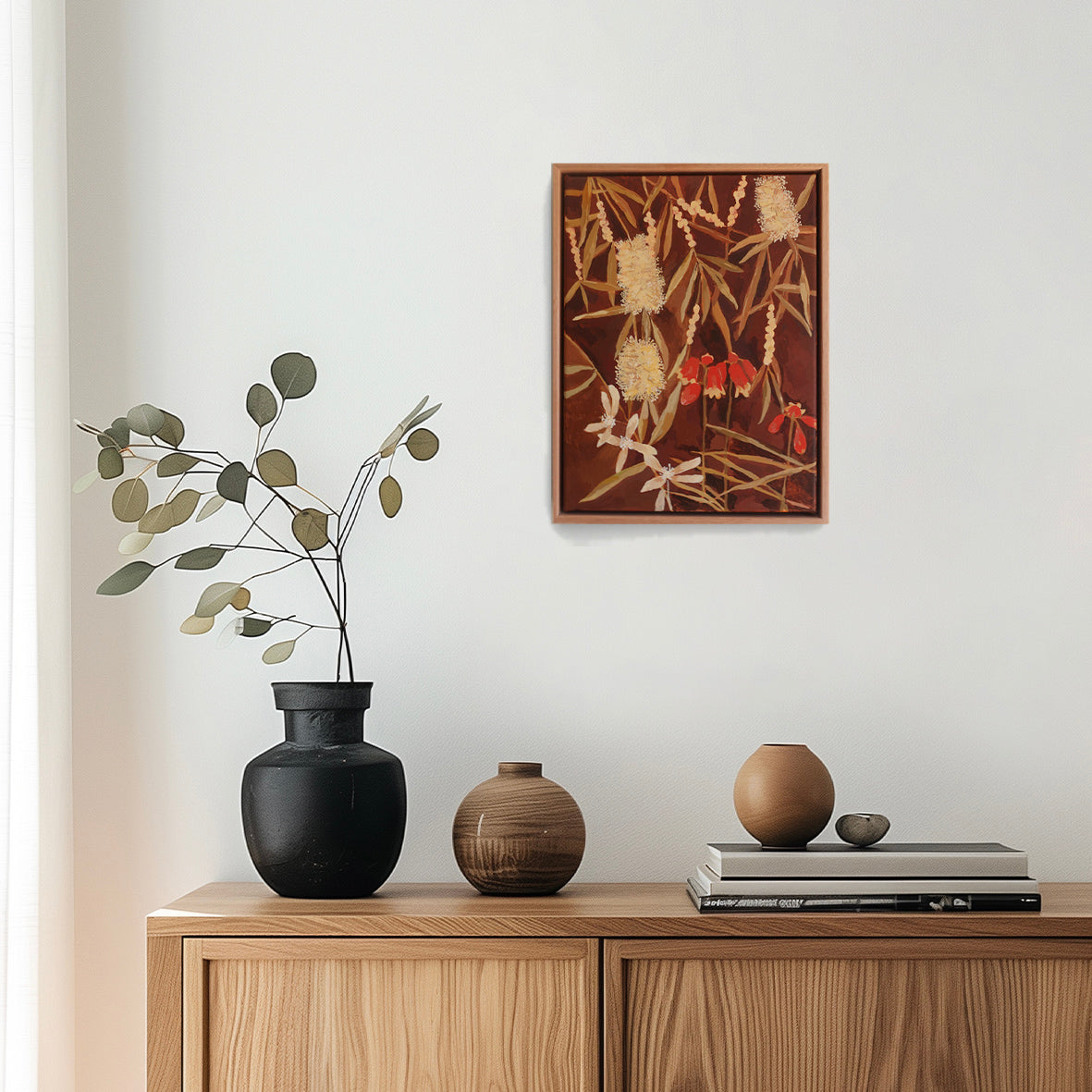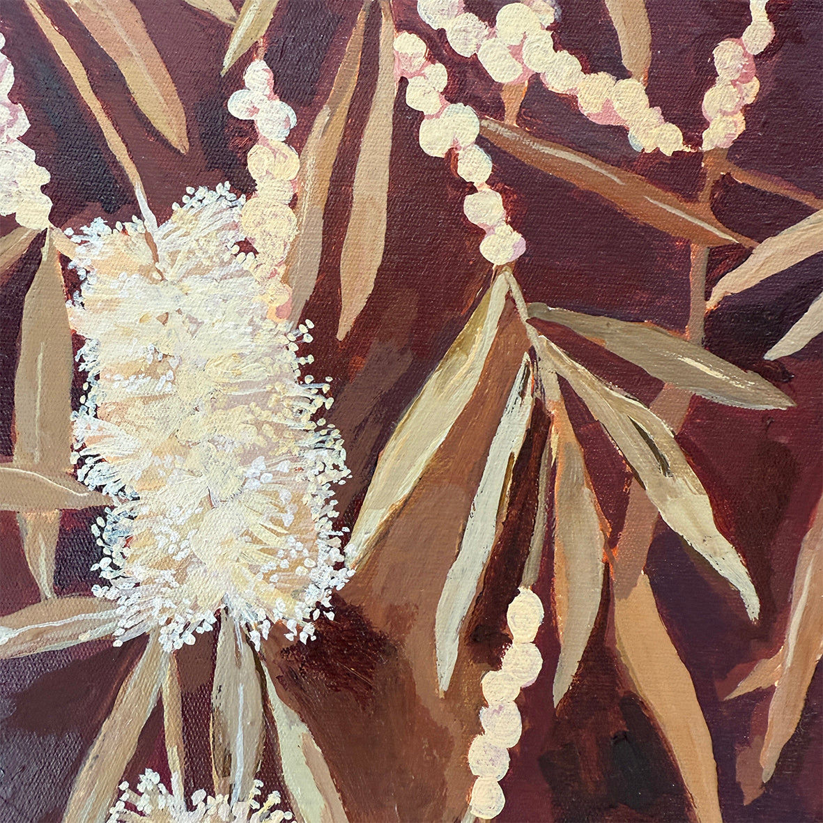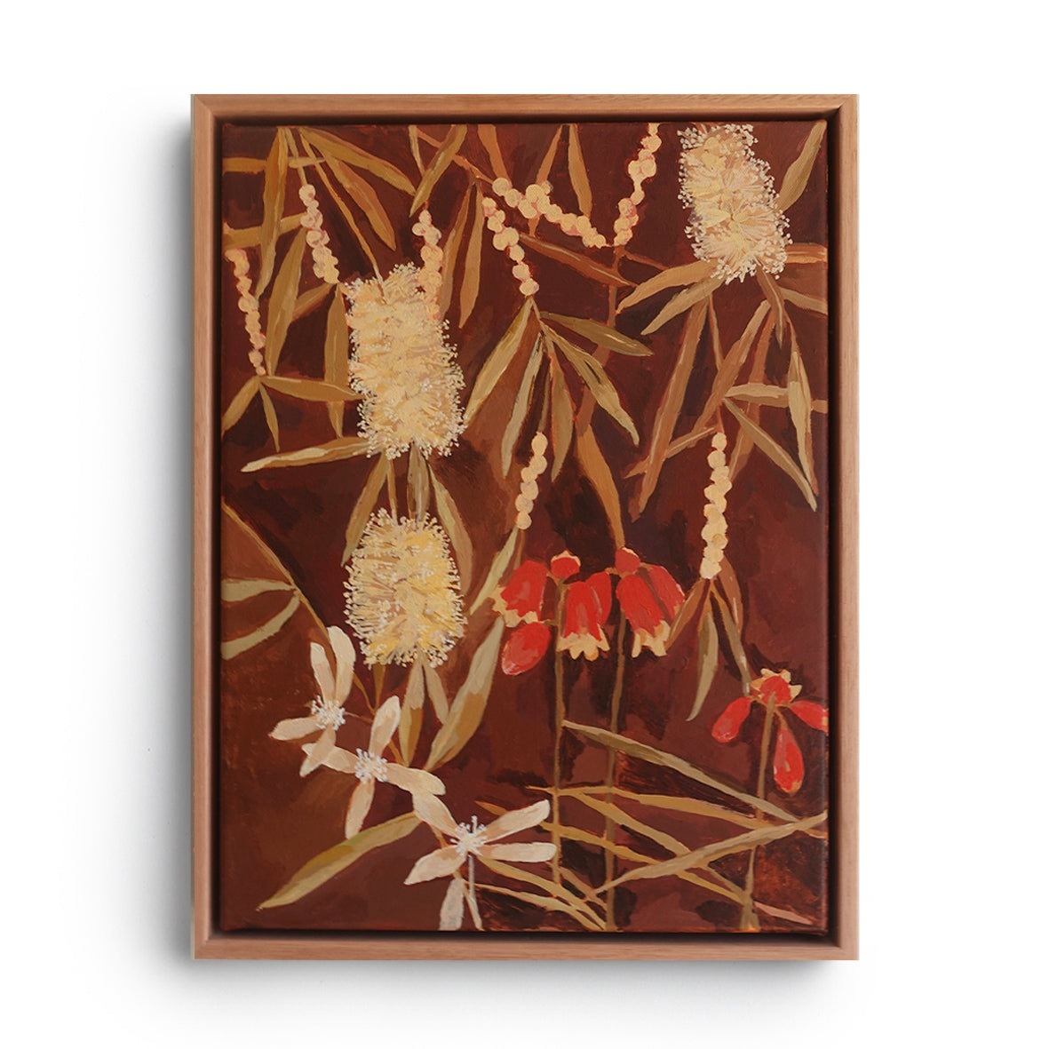 Hand painted, original artwork by Anna Walsh. Featuring callistemon, clematis and christmas bells.