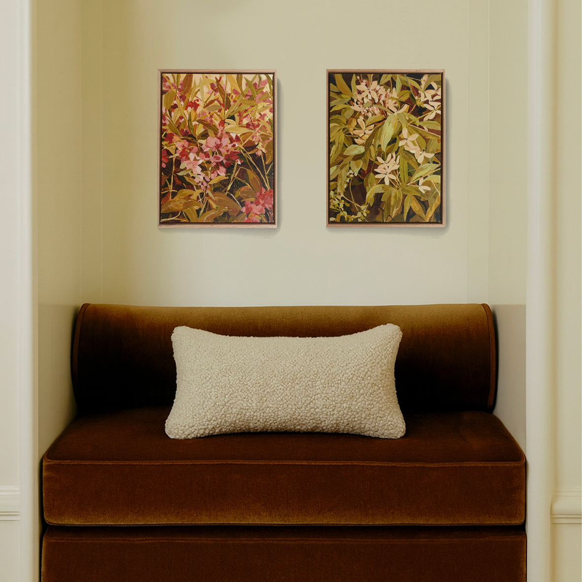 Hand painted, original artwork by Anna Walsh. An abstract study of white flowering jasmine in moody colours.