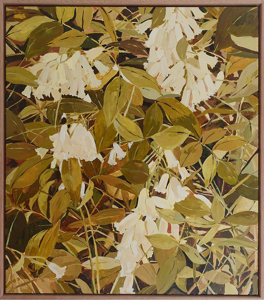 Hand painted, original artwork by Anna Walsh. Inspired by wrambling wonga vines of the snowbelle variety. Moody greens contrasted with bright whites.