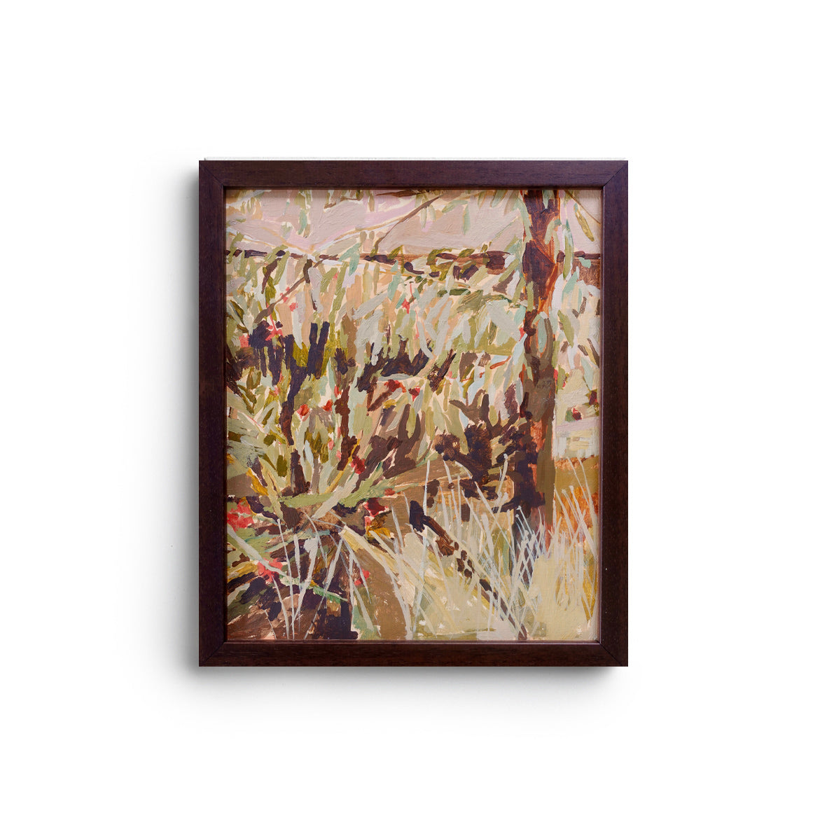 Hand painted, original artwork by Anna Walsh. A small study of the sidewalk near our home in Moama, a blur of colour and movement walking with my little boys at sunset.