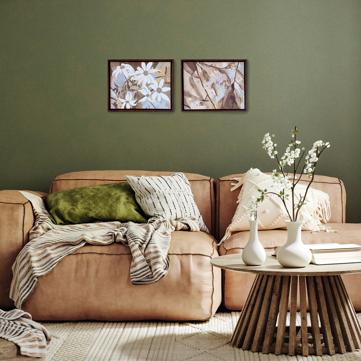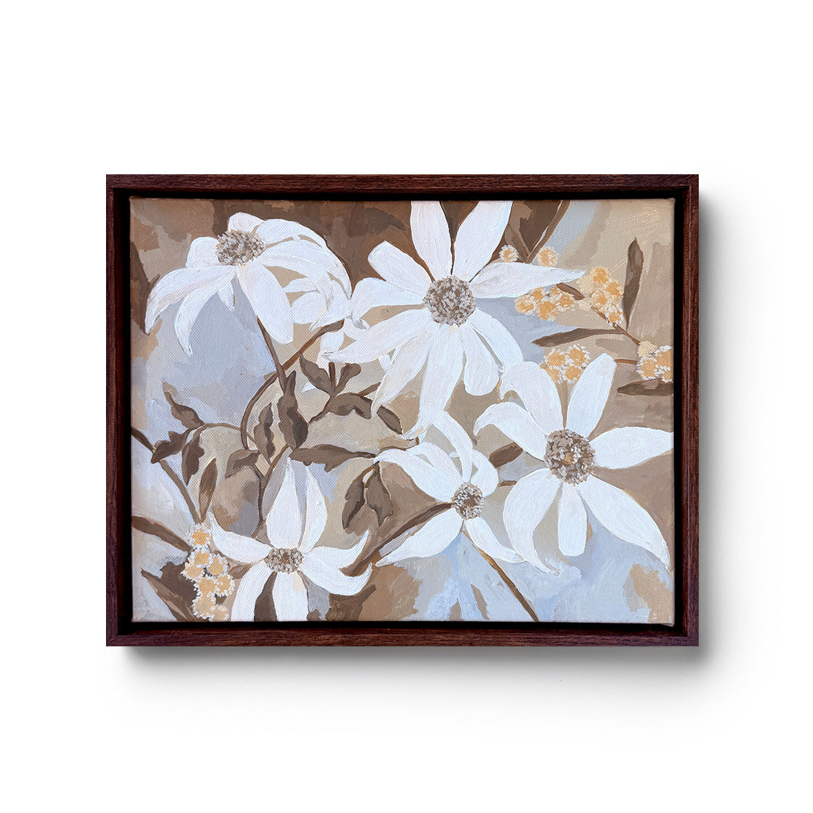 Hand painted, original artwork by Anna Walsh. Featuring flannel flowers and tones reminiscent of Australian eucalypt.